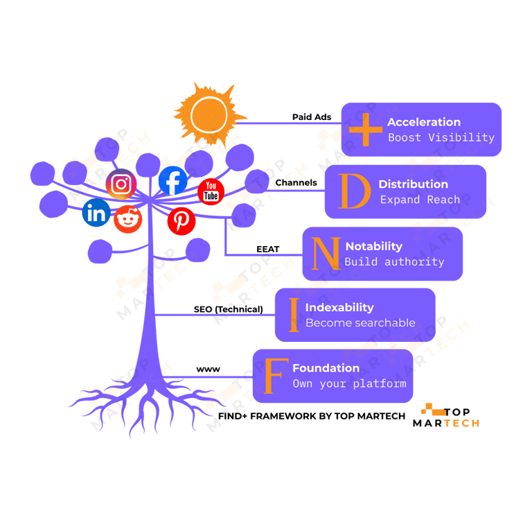 "Helping purpose-driven businesses become discoverable across search engines and generative AI with our Find+ Framework."